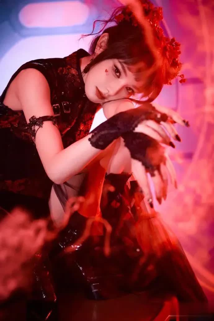 她与红色的适配度极高,身着越红的服装越显美丽,这大概就是浓颜美女所具备的优势,完全不会被服装颜色抢去风头。